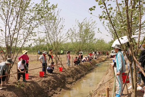 下午,烈日炎炎,孩子们换上园区准备的胶靴,带上劳动工具来到种植区。大家首先听园艺师的指导:怎样取苗、刨坑、种苗、培土、浇水,种植间距有多长……园艺师讲得仔细,孩子们听得认真。小心翼翼地捧着幼苗,刨下一个小坑,轻轻地放进去,再培上细土、浇点水,栽下一棵幼苗,大功告成!孩子们忙得热火朝天、汗流浃背,高涨的热情不惧炎炎的烈日!