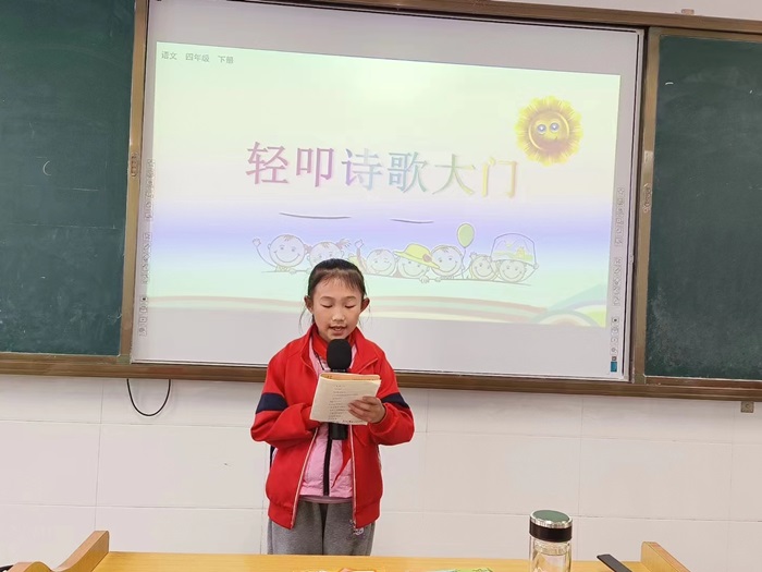 轻叩诗歌大门,孩子们纷纷为诗歌朗诵做足准备,展开一次丰富多彩,不拘一格的诗歌朗诵会,同学们在声情并茂的朗诵中,理解诗歌的内涵,体会诗歌的意境。