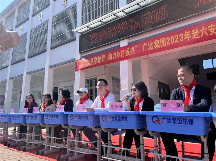 小小课桌,点燃希望之光;暖暖爱心,托起明日朝阳。10月17日上午,广达集团赴金安区椿树镇中心小学开展爱心捐赠活动。广达集团温秀琴女士、申博集团董事长陆阳霞,安徽省人社厅人力资源流动管理处处长何实,金安区委常委、副区长陈城,金安区委教育工委委员、副局长陆永国,椿树镇党委政府和椿树镇中心校主要领导出席活动。